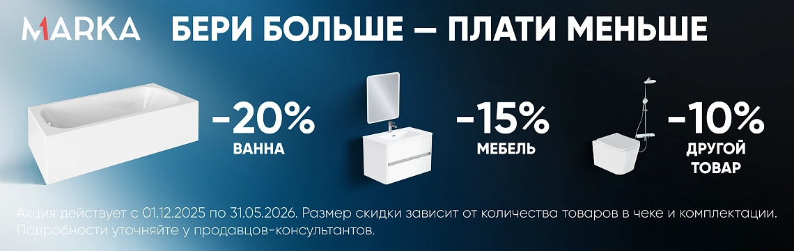 "MARKA ванны & мебель" – официальный интернет-магазин производителя акриловых ванн и мебели для ванной 1Marka, Marka One, Aima. Наша розничная сеть представлена в 20 городах России, но доставляем сантехнику по всей стране (зачастую совершенно бесплатно).