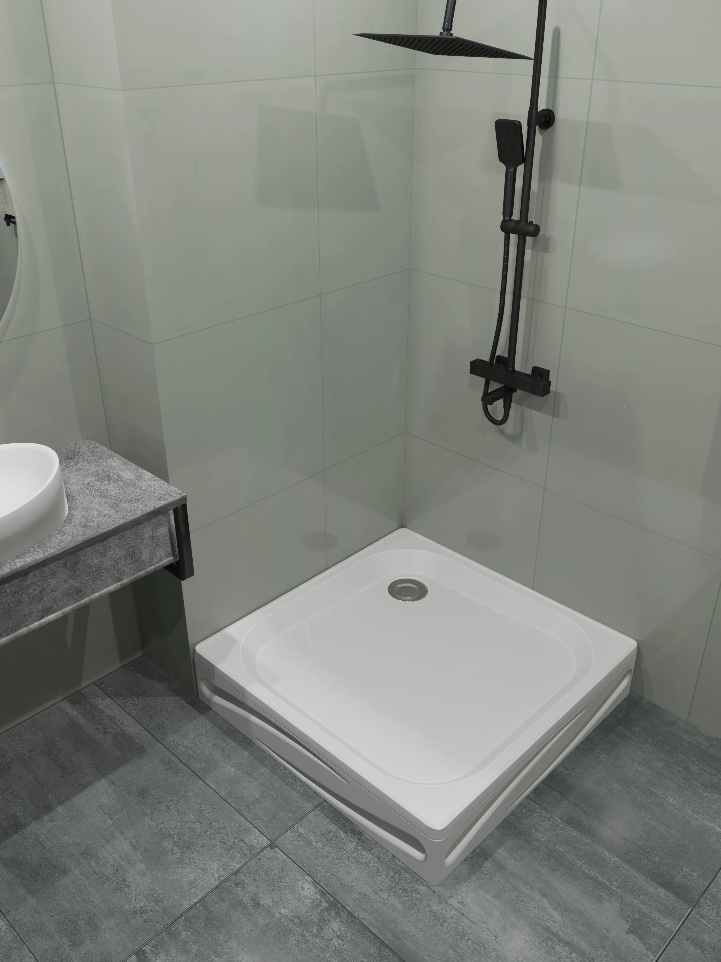 • Индивидуальная панель обеспечит дополнительную защиту и эстетичный вид. Она поможет скрыть коммуникации и придаст завершённый облик поддону.