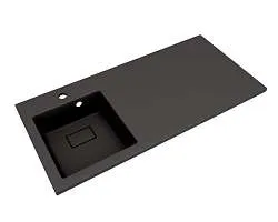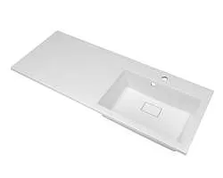 Раковина-столешница, которая позволяет по-новому взглянуть на организацию пространства в ванной комнате. Чаша оптимальной глубины плавно переходит в предназначенную для установки над стиральной машиной вместительную столешницу, которая позволяет с удобством разместить всю необходимую косметику и личные принадлежности. Модель имеет универсальную и при этом актуальную прямоугольную форму, а исполнение из полимерного материала POLYTITAN обеспечивает ее долговечность и отсутствие внешних дефектов. Дополнительное преимущество раковины в ее прекрасном звукопоглощении, благодаря чему посторонние шумы отсутстсвуют даже при сильном напоре воды.Характеристики: