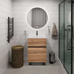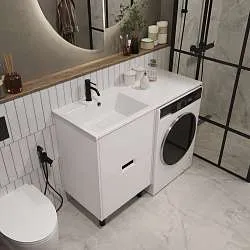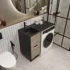 умба под раковину* и стиральную машину Maid – элегантное и функциональное решение, она создает гармоничное пространство в ванной комнате. Искусное сочетание антрацита и "ореха лучистого европейского" придает тумбе изысканный вид, а два вместительных ящика помогут легко организовать порядок. Акцентные опоры черного цвета гармонично дополнят ваш выбор: строгая графитовая или нежная белая раковина – для создания неповторимого стиля ванной комнаты.Характеристики: