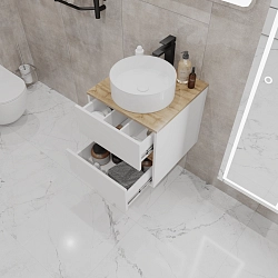 12 570 Р Тумба со столешницей Veil 50П (500х500х500) 2я белая аляска/дуб вотан