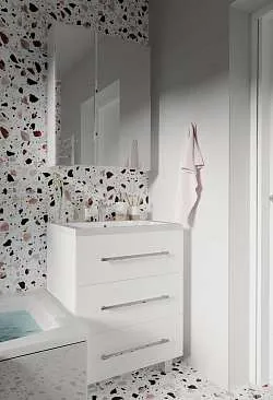 35 810 Р Тумба под раковину Соната 75Н 3в.я. Белый глянец