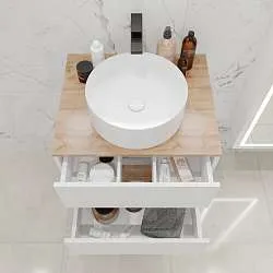 13 210 Р Тумба со столешницей Veil 60П (600х500х500) 2я белая аляска/дуб вотан