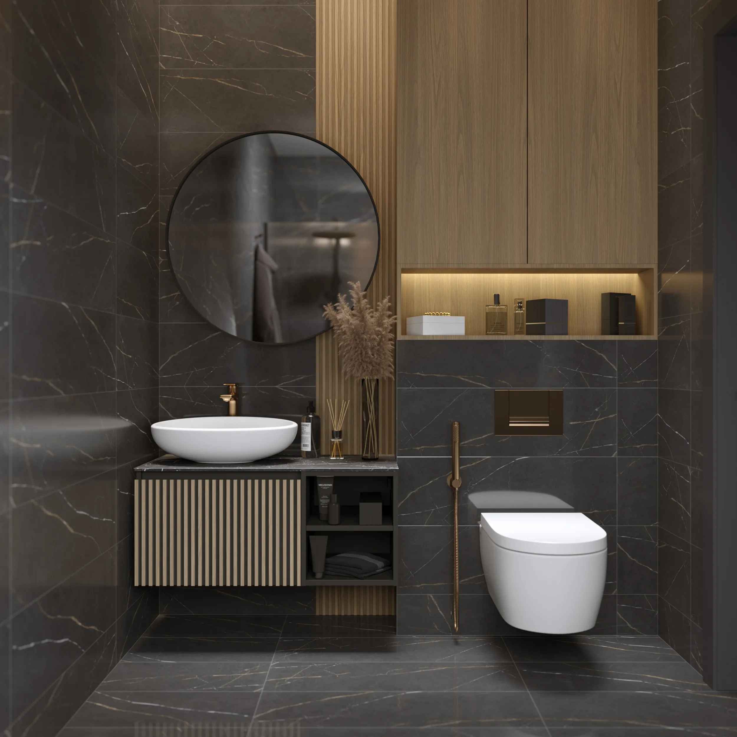 Рейка выполнена из шпона дуба и покрыта лаком. Каждая рейка тумбы бережно обрабатывается вручную мастером, что придаёт каждой детали уникальность и отражает высокое качество исполнения. Метод ручной работы обеспечивает не только визуальную привлекательность, но и долговечность изделия. Рейки аккуратно и надежно прикреплены к фасаду, создавая эффект структуры и объема.